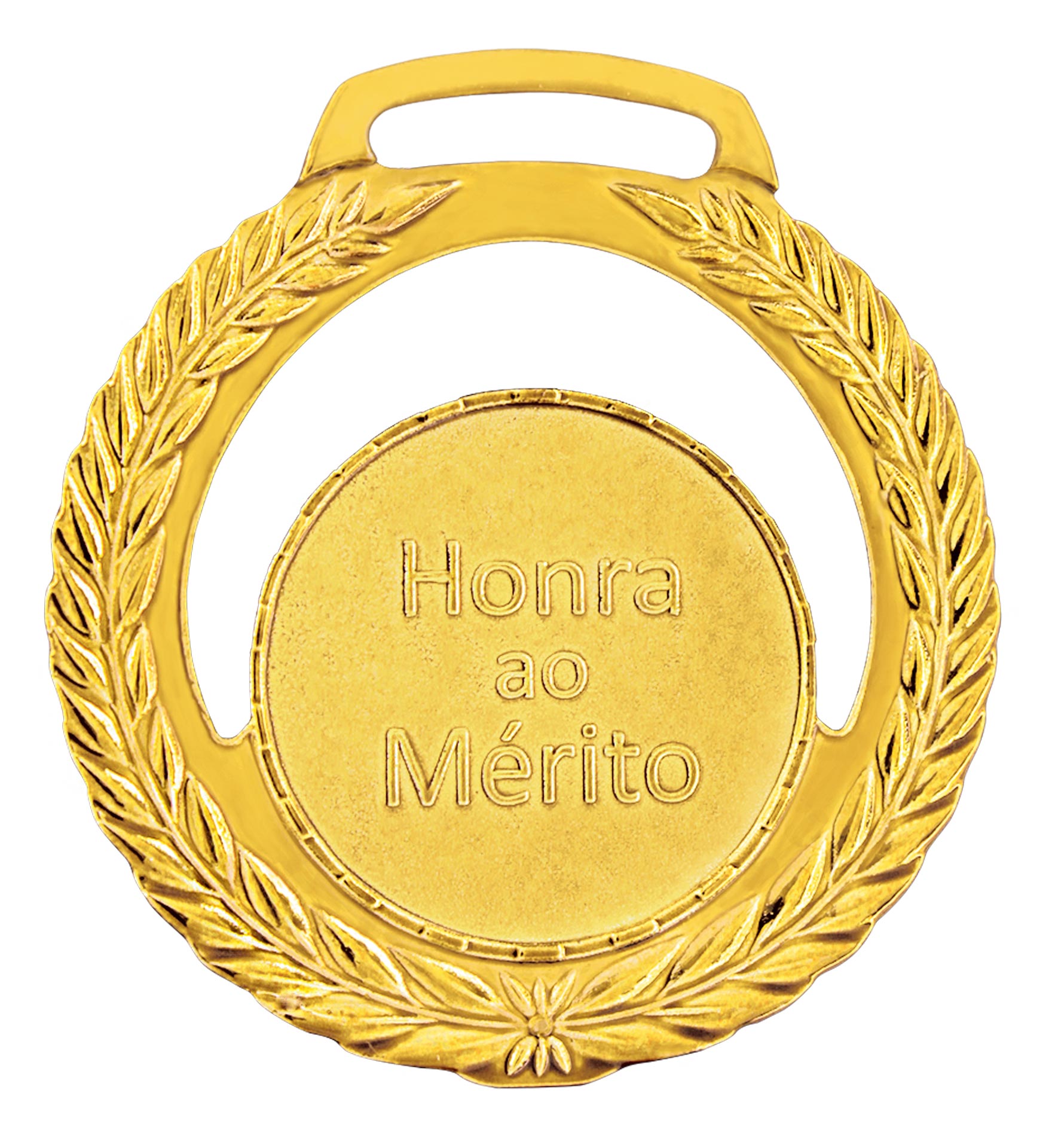 Medalha redonda fundida em liga metálica de zamac, com o tamanho de 44,5 mm de diâmetro e centro liso com 25 mm de diâmetro. Com descrição de Honra ao Mérito em baixo relevo, na parte superior até a metade do centro vazado envolto com um ramo. Espessura máxima de 1,2 mm. Metalizada na cor dourada. Suporte para fita com 1,5 cm de largura. A medalha pode vir acompanhada de fita de cetim nas cores azul, vermelha, amarela, branca ou verde com 1,5 cm de largura.