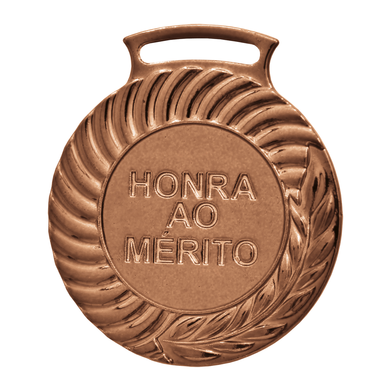 Medalha fundida em liga metálica de zamac, com o tamanho de 40 mm e centro liso com 25 mm de diâmetro. Com bordas raiadas e polidas com a figura de um ramo em alto relevo. Espessura máxima de 1,9 mm. Metalizada na cor bronze. Suporte para fita com 1,5 cm de largura. A medalha pode vir acompanhada de fita de cetim nas cores azul, vermelha, amarela, branca ou verde com 1,5 cm de largura.