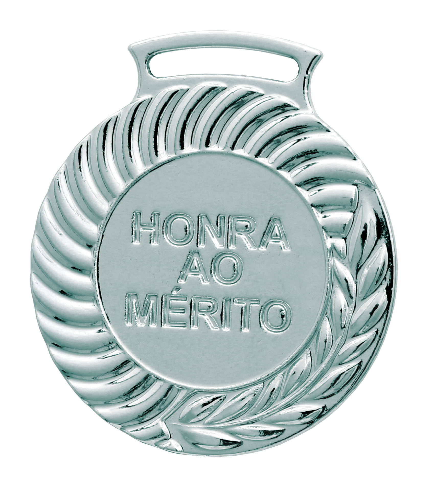 Medalha fundida em liga metálica de zamac, com o tamanho de 40 mm e centro liso com 25 mm de diâmetro. Com bordas raiadas e polidas com a figura de um ramo em alto relevo. Espessura máxima de 1,9 mm. Metalizada na cor prata. Suporte para fita com 1,5 cm de largura. A medalha pode vir acompanhada de fita de cetim nas cores azul, vermelha, amarela, branca ou verde com 1,5 cm de largura.