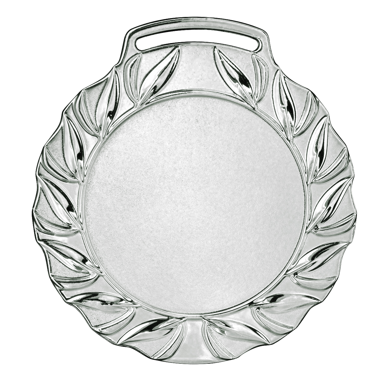 Medalha fundida em liga metálica de zamac, com o tamanho de 75 mm e centro liso com 50 mm de diâmetro. Com uma coroa de louros fundida nas bordas. Espessura máxima de 2,7 mm. Metalizada na cor prata. Suporte para fita com 2,5 cm de largura. A medalha pode vir acompanhada de fita de cetim nas cores azul, vermelha, amarela, branca ou verde com 2,5 cm de largura ou fita de gorgorão nas cores azul, azul-branco-vermelha ou verde-amarela com 2,5 cm de largura.