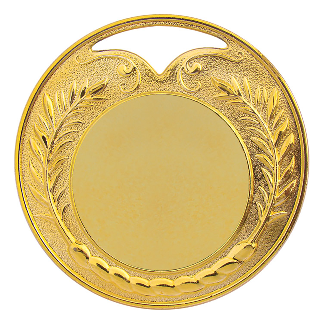 Medalha redonda fundida em liga metálica de zamac, com o tamanho de 65 mm de diâmetro e centro liso com 35 mm de diâmetro. Ao redor da medalha um ramo em alto relevo. Espessura máxima de 2,5 mm. Metalizada na cor dourada. Suporte para fita com 2,5 cm de largura. A medalha pode vir acompanhada de fita de cetim nas cores azul, vermelha, amarela, branca ou verde com 2,5 cm de largura ou fita de gorgorão nas cores azul, azul-branco-vermelha ou verde-amarela com 2,5 cm de largura.